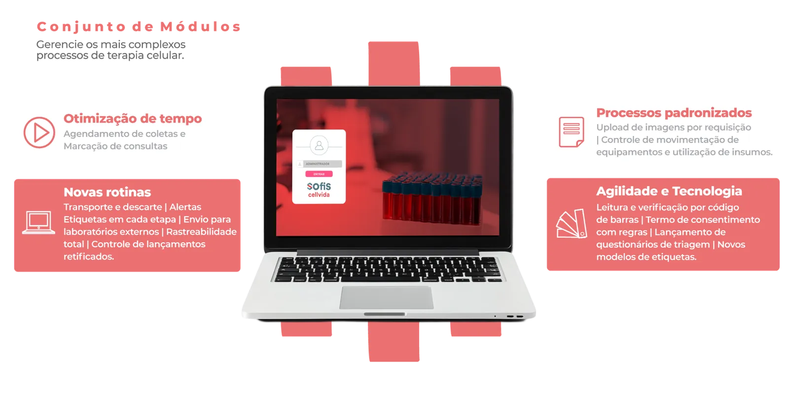 O Sofis CellVida se destaca pela flexibilidade e integração, permitindo configurar protocolos e gerenciar de forma eficiente todas as etapas, desde a coleta até o armazenamento das células.