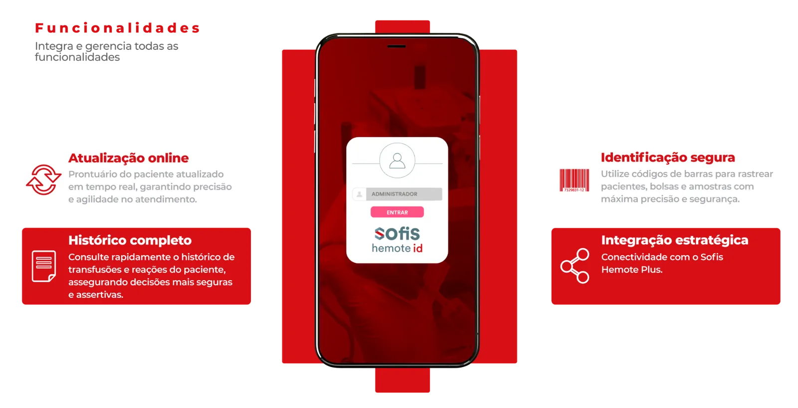 Compatível com dispositivos Android, a solução oferece análises em tempo real, reduzindo riscos e assegurando conformidade com os protocolos hemoterápicos. Integrado às demais soluções Sofis, otimiza o fluxo de trabalho, aumenta a segurança e garante rastreabilidade total dos procedimentos.