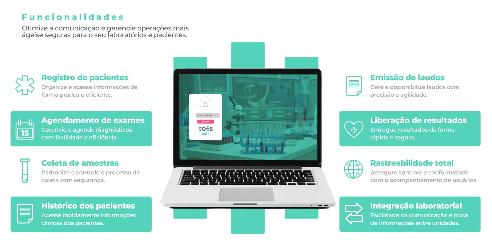 O Sofis Lab+ é a solução completa para a gestão laboratorial, garantindo controle eficiente dos processos, rastreabilidade total das amostras e conformidade com as normas regulatórias. Com ele, laboratórios otimizam suas operações, reduzindo erros e aumentando a produtividade.